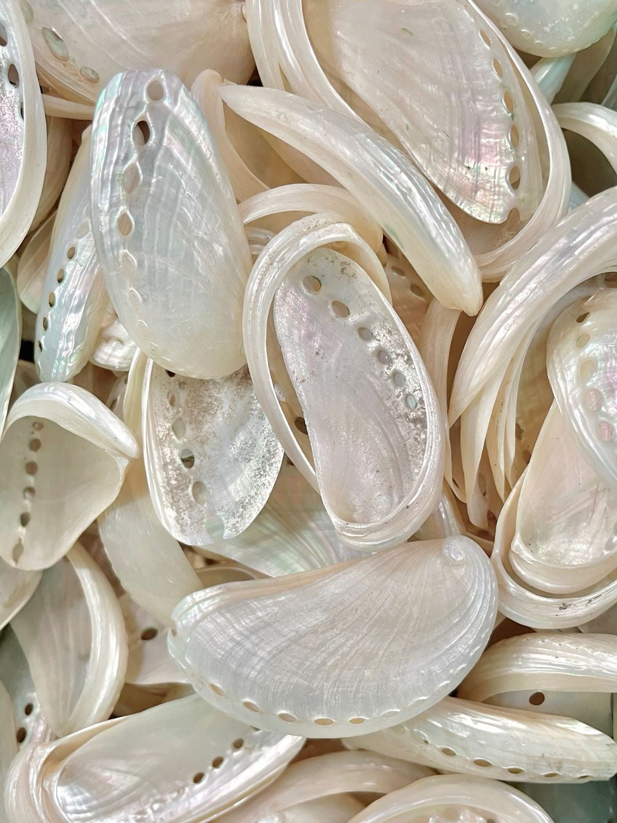 The shells you see are real—handpicked, shaped by nature, and refined over hours. It takes hours to cut, smooth, and prepare each one. Then, they are sorted, matched, and placed with intention.